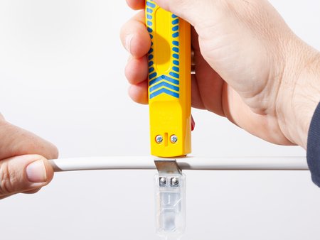 Cable knives are used in the field of cable processing. They make it easier for the user to remove the outer cable insulation without damaging the inner conductors and are needed every day in the daily routine of many professional users, for example in house installations.