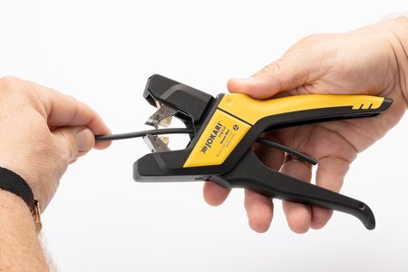 Unsere einzigartige, automatische Abisolierzange ist der Problemlöser für zahlreiche Abisolieraufgaben im Bereich 4,40 bis 7,0 mm Ø.